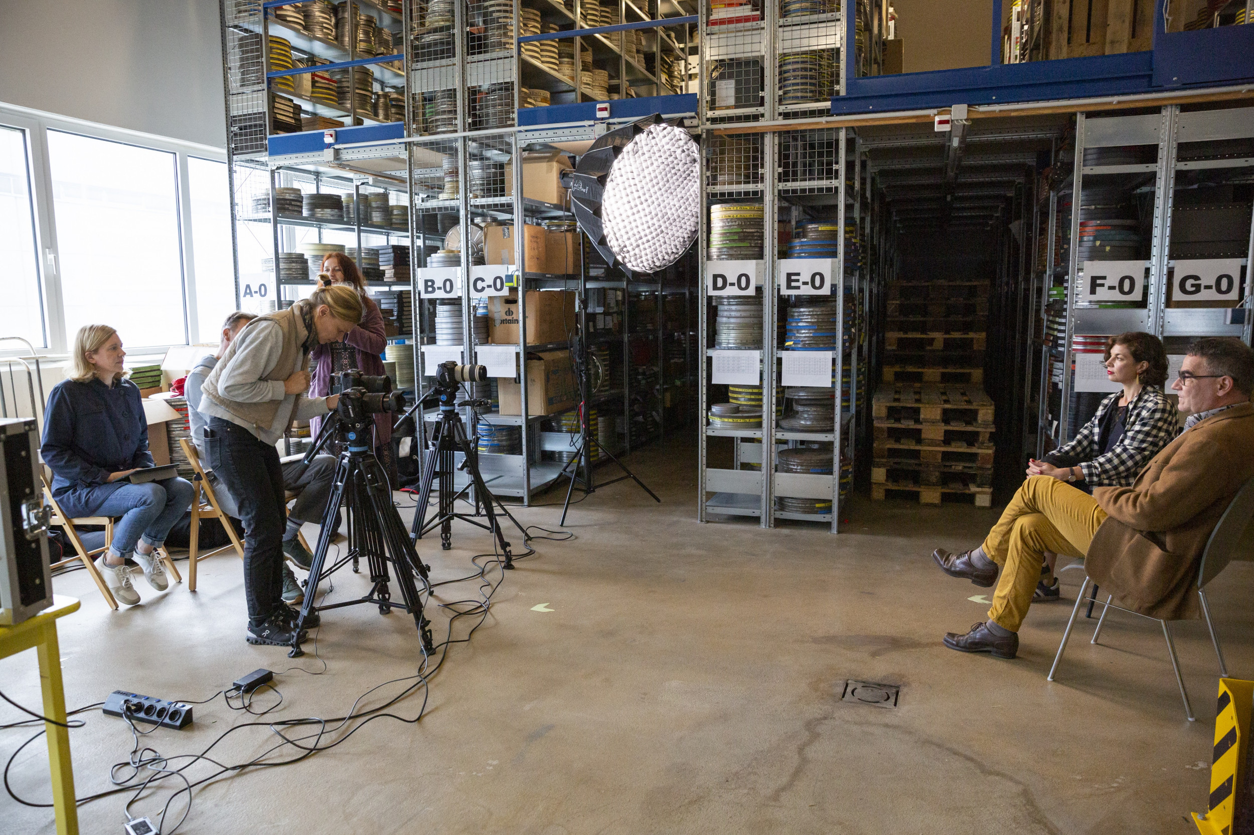 Lea Wohl von Haselberg and Bernd Buder from the JFBB's programme collective were among the experts invited to the discussion at the Kinemathek's external depot in Marienfelde.